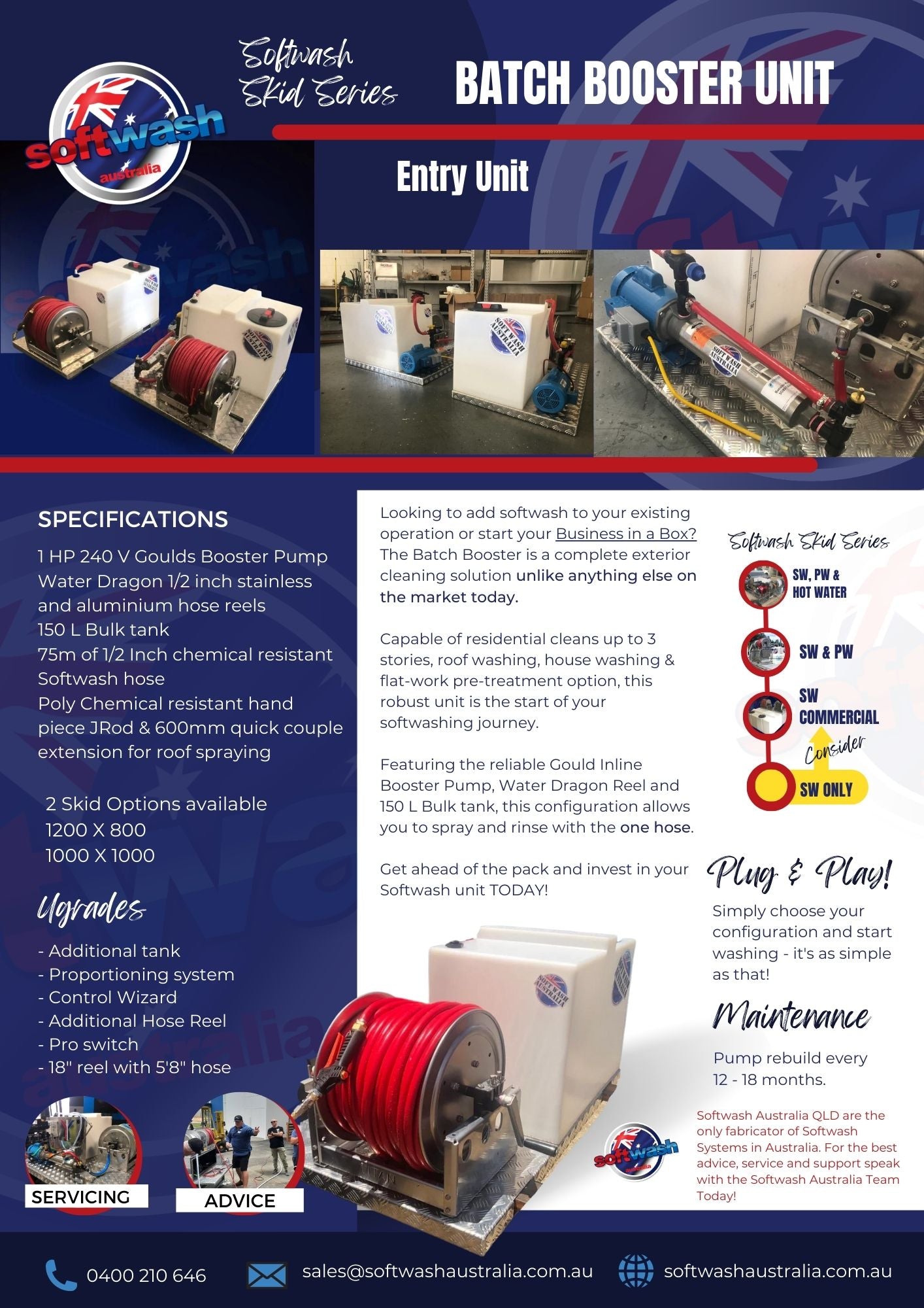 With a footprint of 1250mm long x 1250mm wide x 1000mm high, these systems are ideal for commercial and residential softwash applications.