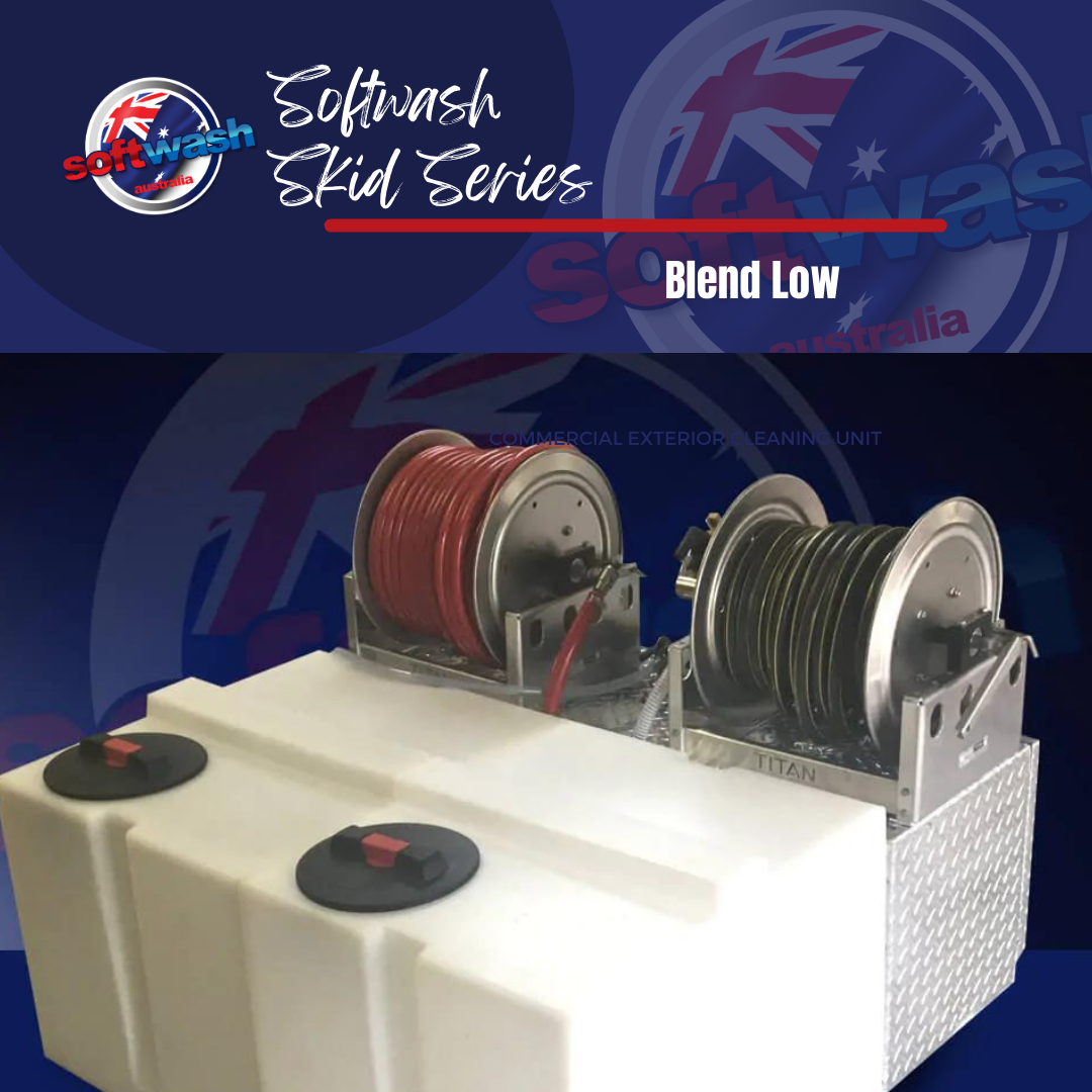 With a footprint of 1250mm long x 1250mm wide x 1000mm high, these systems are ideal for commercial and residential softwash applications.